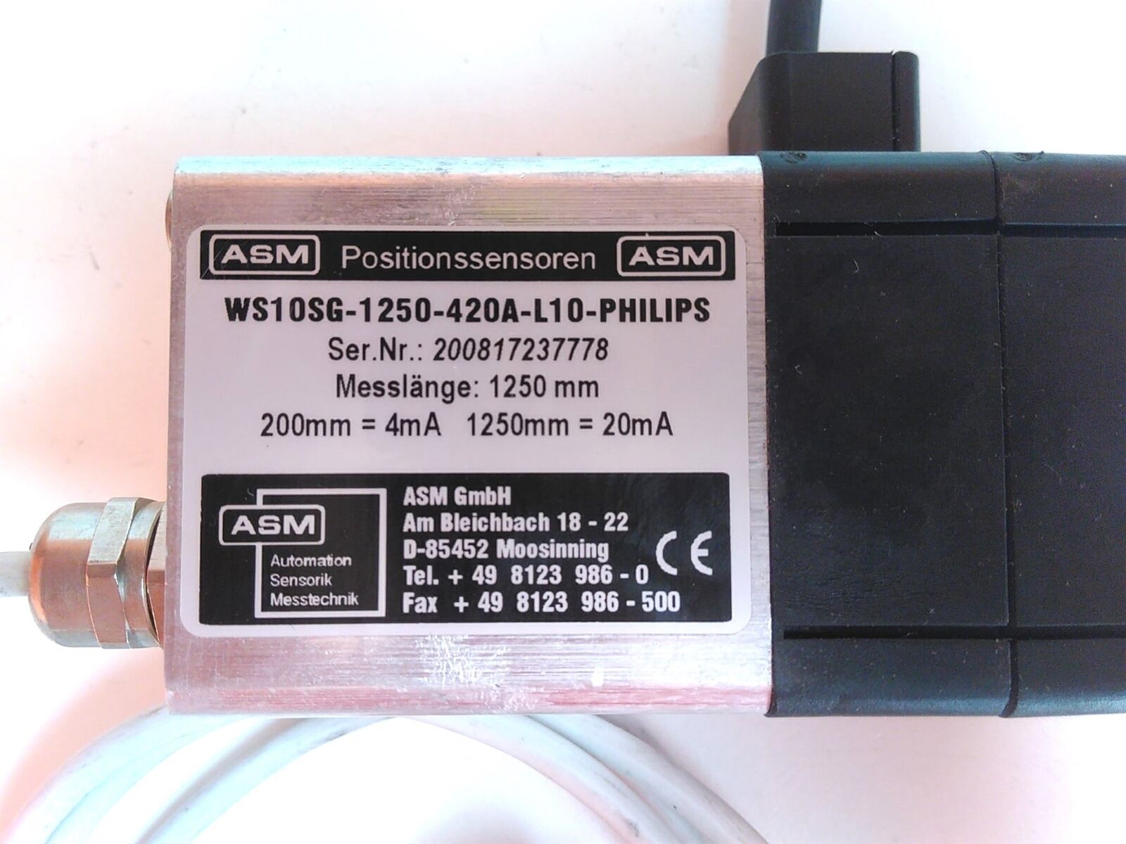 Defective ASM WS10SG-1250-420A-L10 Position Sensor AS-IS