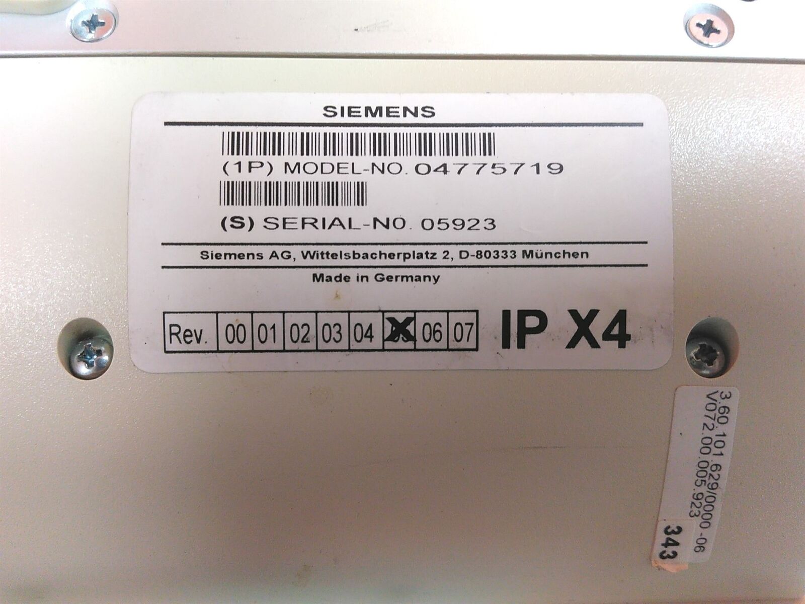 For parts or not working Defective Siemens 04775719 3.60.101.629/0000-06 Control Module AS-IS